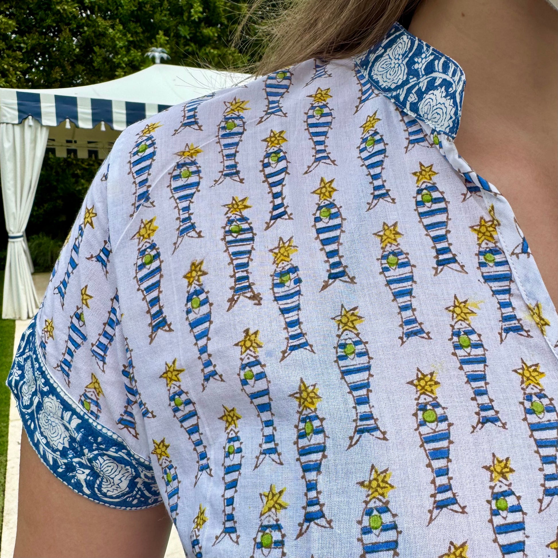 Our Lightweight short cotton kurta is a pop on and go out for a day out on by the water. Side slits, Mandarin collar, trim at the edges but sadly no pockets for shells or keys but that should deter you from this easy Kurta because that's what our totes are for. Designed in Palm Beach, Fl for our love of barefoot living, spending time outdoors while wearing easy to wear clothes that make you smile. Hand wash in cold water separately before wearing.