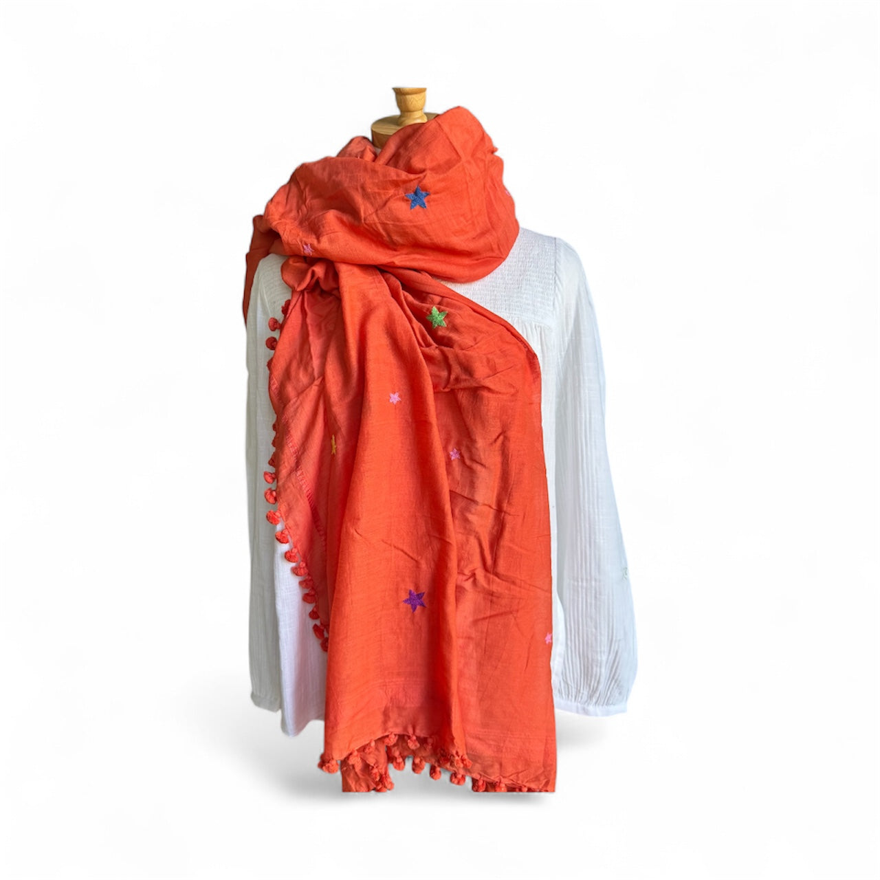 Hand Embroidered Star Pom Pom Wrap
