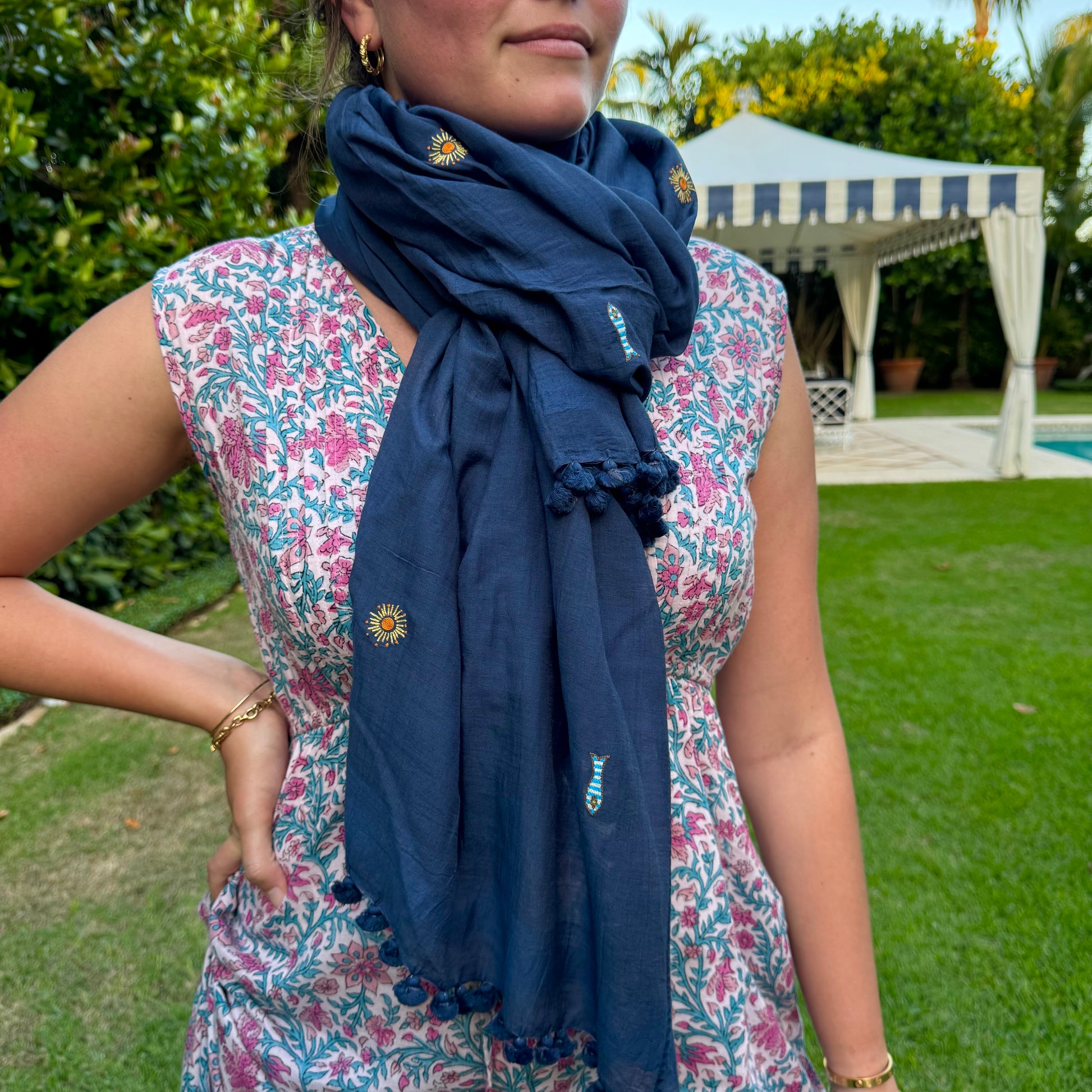 Hand Embroidered Follow the Sun Pom Pom Wrap
