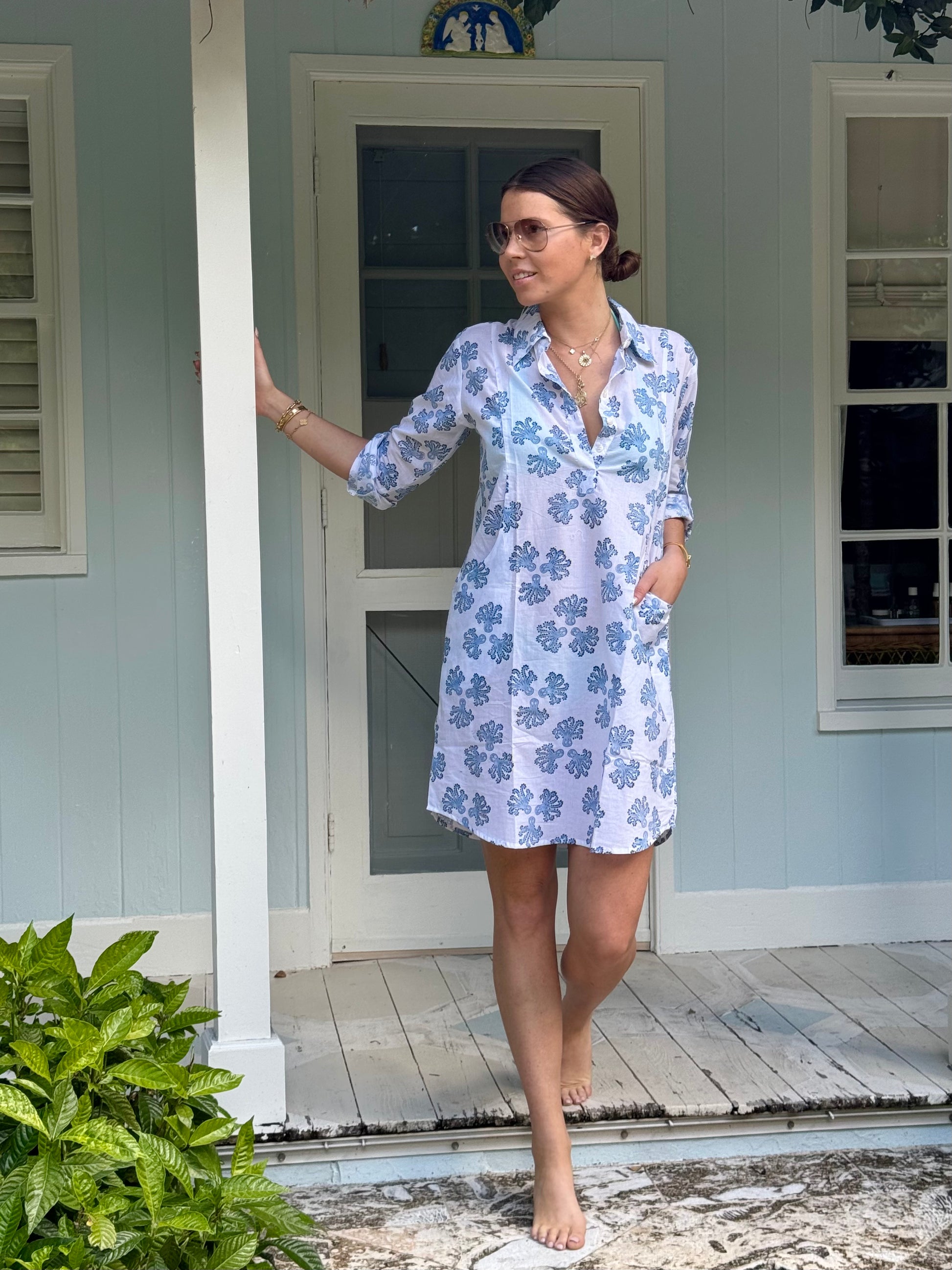 Once I watched The Octopus Teacher I had a new appreciation and love for the very clever Octopus. So we had to come up with a print and this one is called Head Games. The print is whimsical, it's delightful and it will be your go to for time out on the water, days in sunshine, time with friends or time relaxing at home. Designed for our love of nature and whimsical island living but created in India by our talented team of artisans. Hand wash cold before wearing.